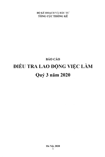 Báo cáo này sẽ trình bày các kết quả chủ yếu của cuộc Điều tra Lao động và Việc làm trong quý 3 năm 2020, nhằm cung cấp các thông tin về lao động và việc làm cho người sử dụng.
