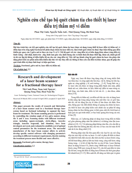 Nghiên cứu chế tạo bộ quét chùm tia cho thiết bị laser điều trị thẩm mỹ vi điểm